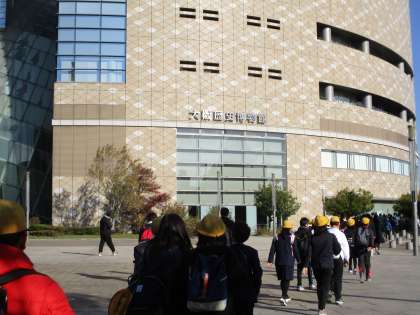 今日は、社会科の学習より『大阪歴史博物館』と『ピースおおさか』に行きました。始めに『大阪歴史博物館』に行きました。