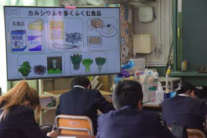 The sixth graders learned about calcium, which is the basis of bones. As we age, calcium in the body decreases. If we take in a lot of calcium when we are young, it decreases less. Therefore, in order to get more calcium now, we learned what foods contain a lot of calcium.