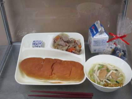 The Naniwa udon served in today's school lunch is based on kitsune udon. The udon is cut into triangles and contains sweet and spicy fried tofu, kamaboko, Chinese cabbage, and green onions, and is eaten with grated kelp. Kitsune udon is said to have originated in Osaka. Also, since grated kelp has been made in Osaka since ancient times, udon noodles with grated kelp and thin fried tofu are called Naniwa udon in Osaka city school lunches. Naniwa udon is an original school lunch menu in Osaka city.