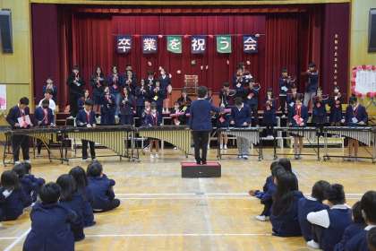 メッセージカードのお礼に6年生は合奏をプレゼントしました。