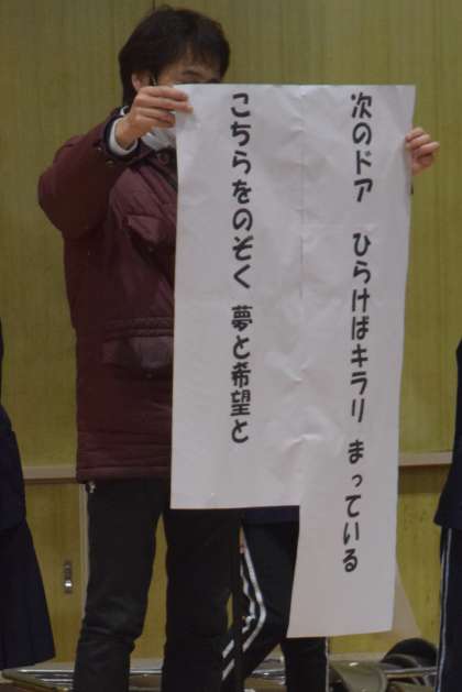校長先生からは卒業をお祝いする短歌のプレゼントがありました。