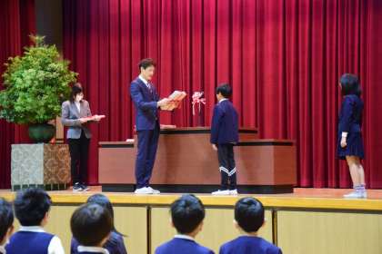 A representative student from each grade received a certificate of completion from the principal. They will be moving up to a new grade in April.