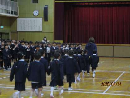 今日は1年生との対面式でした。1年生は「よろしくお願いします」と大きな声で言うことができました。2年生から6年生の上級生は校歌を歌って歓迎しました。