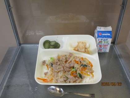 Pork bowl, cucumber with bonito plum flavor, shiratama dumplings