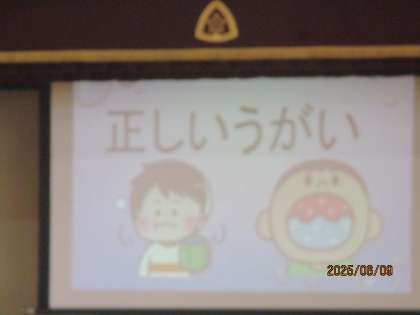 今週は「手洗い・うがい週間」です。今朝の児童集会は健康委員会の児童が正しい手洗いとうがいの仕方を紹介しました。正しい手洗いは、手洗いソングに合わせて手を洗う練習もしました。