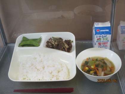 Today’s school lunch featured Chinjao Niurou Si. The savory flavor of the beef was well complemented by a sauce made from sugar, dark soy sauce, oyster sauce, and potato starch.