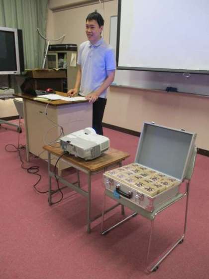 中でも小学校から高校までに使われる税金が約1千万円であるとの話のあと、実際に1千万円の札束の見本を持たせてもらいました。見本ですが重さは本物と同じく約1kgだったので、その重みを実感することができました。そして最後には、1千万円の束が10束入ったジュラルミンケースも持たせてもらうという貴重な体験もありました。