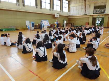 先日、警察の方々に来ていただき、「交通安全教室」を行いました。