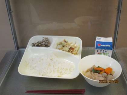 豚肉と野菜の煮物は豚肉は柔らかく、スープのうま味が効いていました。ひじき豆は大豆は歯ごたえがあり、ほのかな塩味がありました。ささみとキャベツのごまみそ焼きはキャベツはシャキシャキ、ごまの風味が香る一品でした。