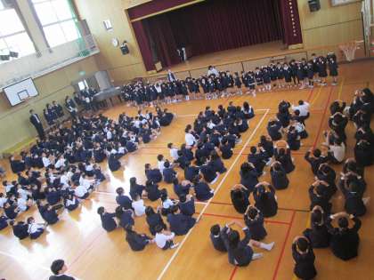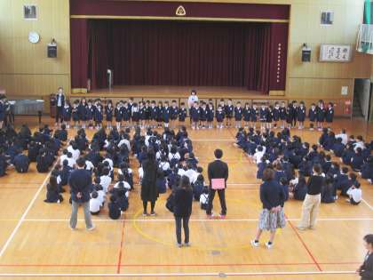 昨年度までお世話になった先生方に、あたたかい言葉や励ましの言葉をもらいました。児童は静かに先生方のお話を聞き、最後は花道を作って拍手でお別れをしました。