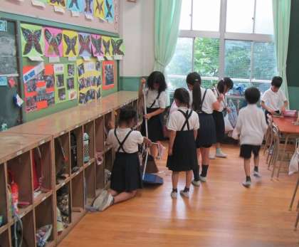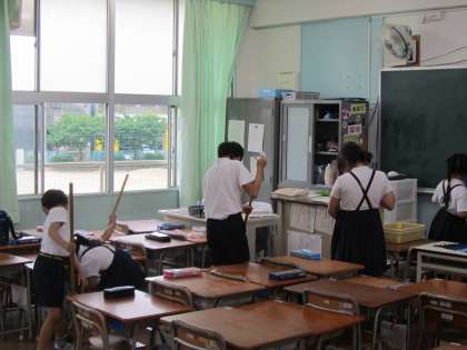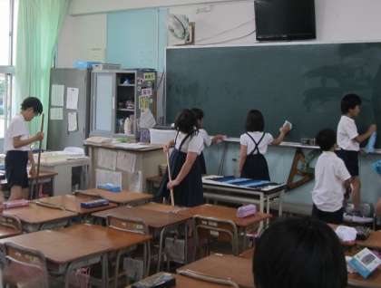 リーダーの6年生や高学年である5年生の児童が、年下の児童に掃除の仕方などを教え、さまざまな学年で助け合いながら、学校をきれいにしてくれました。