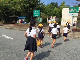 バスに乗ってから1時間半、サービスエリアに着きました。体調が、悪い子も1人も出ずに順調にスタートしています。到着まで、残り1時間半程です!