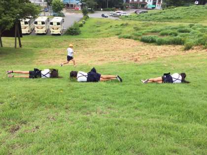 昼食が終わり、子どもたちは山の斜面でゆっくり休憩。