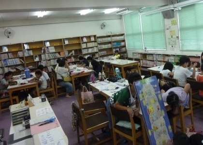 静かに集中して読書をしたり、友だちと一緒に本を読んでいたり、高学年の児童が年下の児童に夏休みの宿題を教えてあげていたりと、それぞれの児童が思い思いに楽しい時間を過ごしています。
