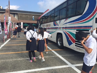 休憩所に到着!バス酔いも大丈夫そうです。みんな、外に出てリフレッシュし再出発です!