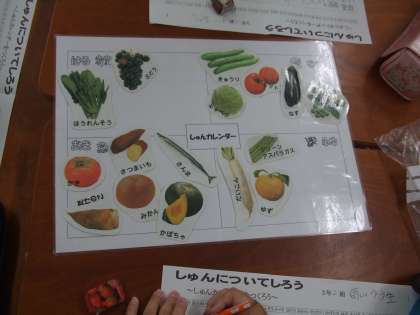 野菜や果物の旬について子どもたちは一生懸命考えてました。