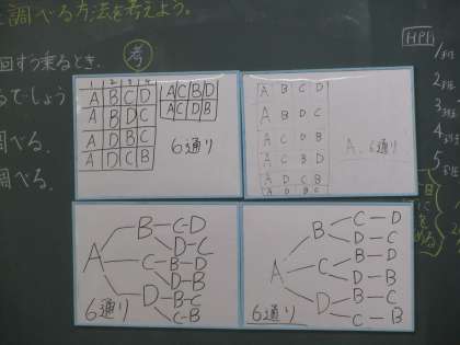 多くの先生方に見ていただいためか、いつもとは違う緊張感に包まれていましたが、「何通りあるのかな」ととなりどうしで相談もしながら、図や表を使って調べていました。