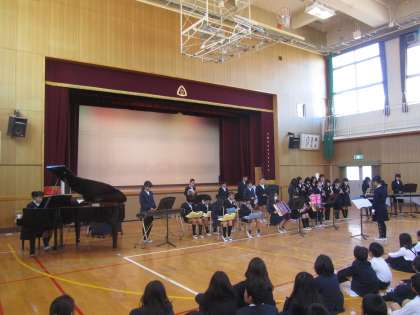 3年生は、3年生になってからずっと練習しているリコーダーを使って、「ふえ星人」と「山のポルカ」の2曲を演奏しました。みんなでリズムを合わせて、とても美しい演奏を聴かせてくれました。