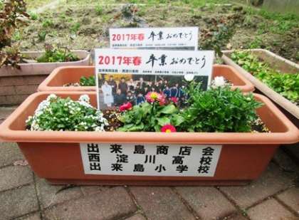 出来島商店会のみなさんが、西淀川高校協力のもと、作成してくださったプランターが学校に届きました。