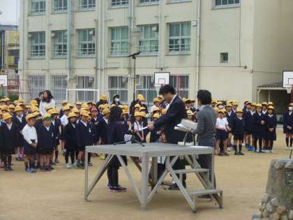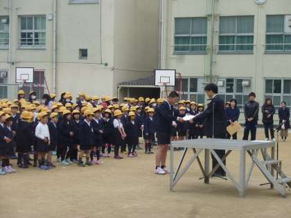 こちらはバレーボールチームの「川北マルコス」に所属する児童の表彰と、先日も紹介した「教育長表彰」を受賞した児童の表彰の様子です。