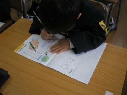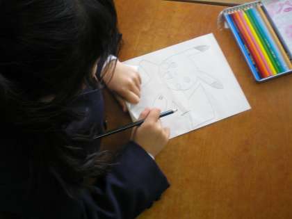 色塗りするときも持ち方に気を付けながら、書いていました。