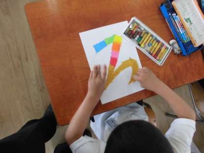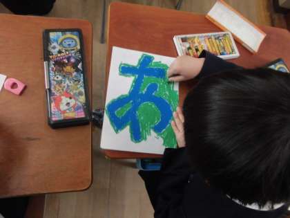 2年生のクラスの学級目標をみんなで決めて、みんなで字を書いて色を塗りました。