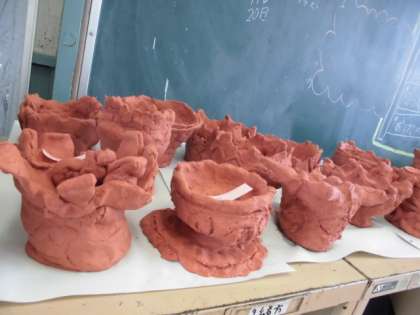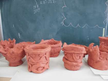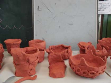 1時間目、2時間目の図工の時間に縄文土器を作りました。