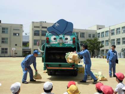 2時間目は実際にパッカー車に乗ったり、動かしてもらったりしてとても貴重な体験をすることができました。
