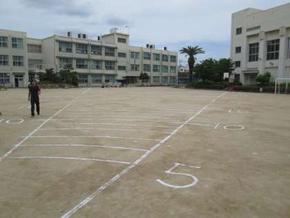 今日は、運動場で「ソフトボール投げ」と「立ち幅跳び」を行いました。