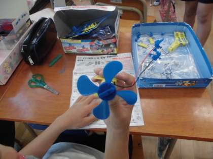 授業参観では、理科の電池とモーターの回る向きについて、実験しました。