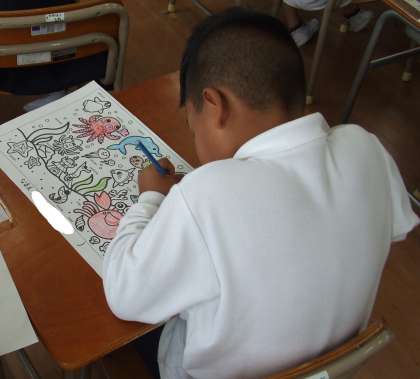 たまにはぬり絵も! ていねいに色を塗る練習ですね。