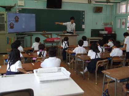 今日は特別授業で盛田先生に算数の授業をしていただきました。