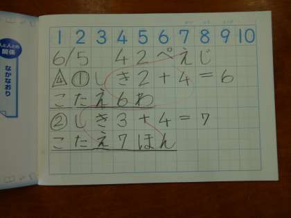 ノートを使って初めて式と答えを書きました。