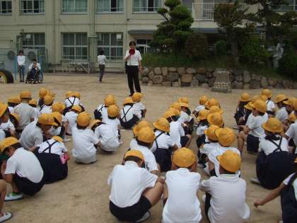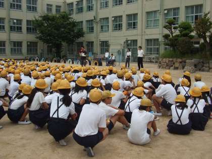 今日は学校で火災が起きたことを想定した避難訓練をしました。