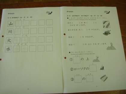 これは初期の漢字指導のプリントです。1、漢字を読む。2、よみがなを書く。3、漢字練習をする。4、漢字の使い方を練習する。と取り組みやすい漢字プリントで学習しています。