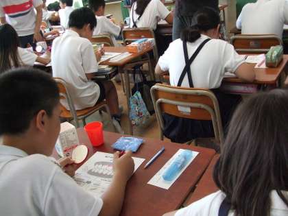 朝、歯をみがいてきたのに、赤く染まっている児童が
