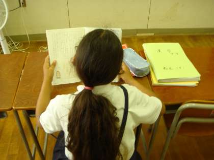 まとめの時期です。ふだんの学習の他に、診断テストを持ってきてやる子、お習字セットを持ってきて毛筆をやる子、などさまざまです。1学期の学習をあと4日で終わらせましょう!