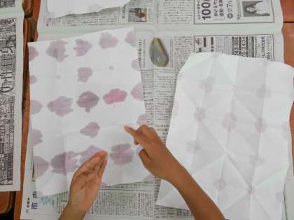 アサガオの花びらで紫色に染まった水を見てみんなビックリ!