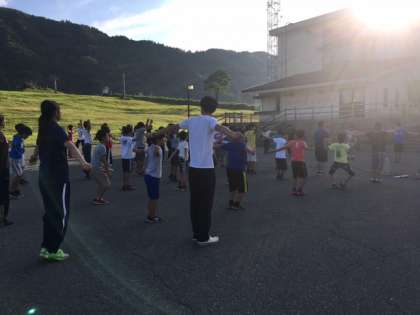 ラジオ体操をし、健康観察をしてます。