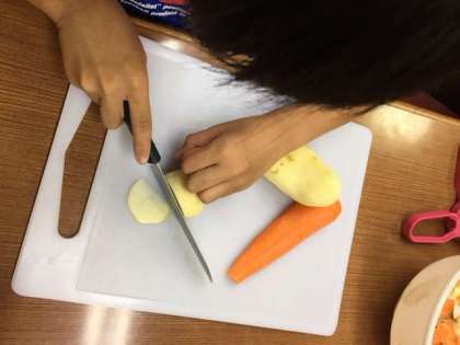 野菜を切ってます!