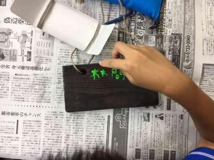 焼き板に、林間の思い出を、ペイントしてます!