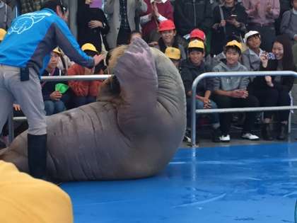 つららちゃん、850kgあるのに、腹筋ができます。驚きました。