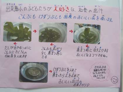 この掲示物を見て、出来島小学校の給食がおいしいひみつが