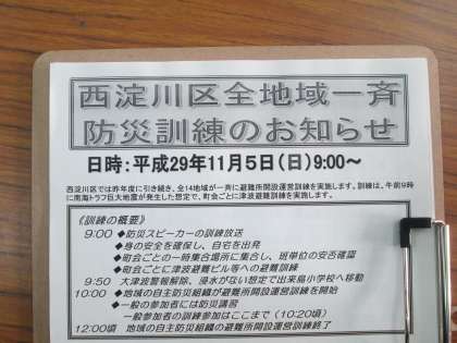 11月5日(日)、学校で西淀川区全地域一斉防災訓練が