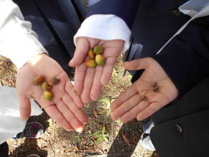 いいお天気の中、1年生は秋見つけに行ってきました。
