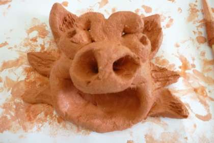 作品展に向けて、シーサー作りをしました。