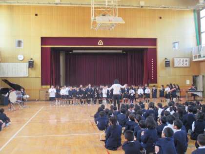 3年生は、合唱「友達」、合奏「パフ」の2つを発表しました。緊張しながらも、今までの練習を思い出して、歌い演奏することができました。練習の中では、お互いの音をよく聞き必死に練習する様子が印象的でした。