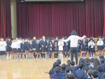 今日の集会では、2・3・5年生が学年ごとに発表を行いました。