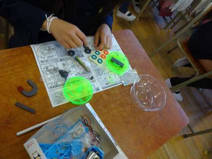 子どもたちは、楽しんで取り組んでいました。教室にある様々なものを探しては、くっつくか調べていました。
