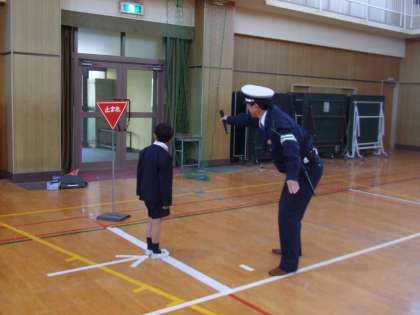 先日、西淀川警察署の方に来ていただき、交通安全指導をうけました。